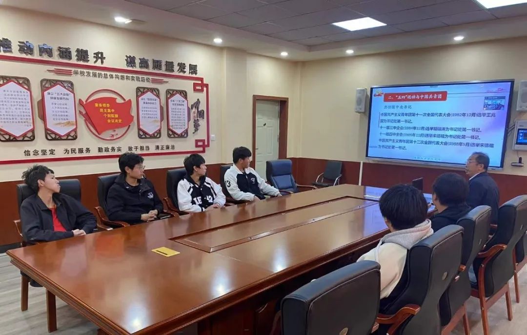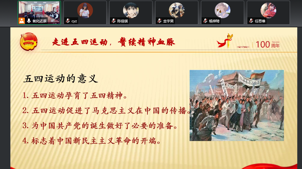 团课围绕五四运动和共青团的发展史展开。崔校长通过视频向同学们介绍了五四运动的起因、过程和意义,为同学们生动地展现了共青团发展壮大过程中的重大历史事件,让同学们真正了解到共青团百年发展的历史,从而引导广大共青团员传承红色基因,争做时代新人。