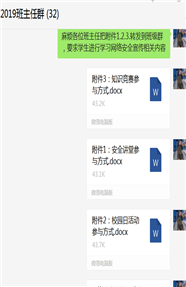 2.利用班级微信群宣传形式,发布了相关安全知识、法律法规,要求学生扫码进行学习。