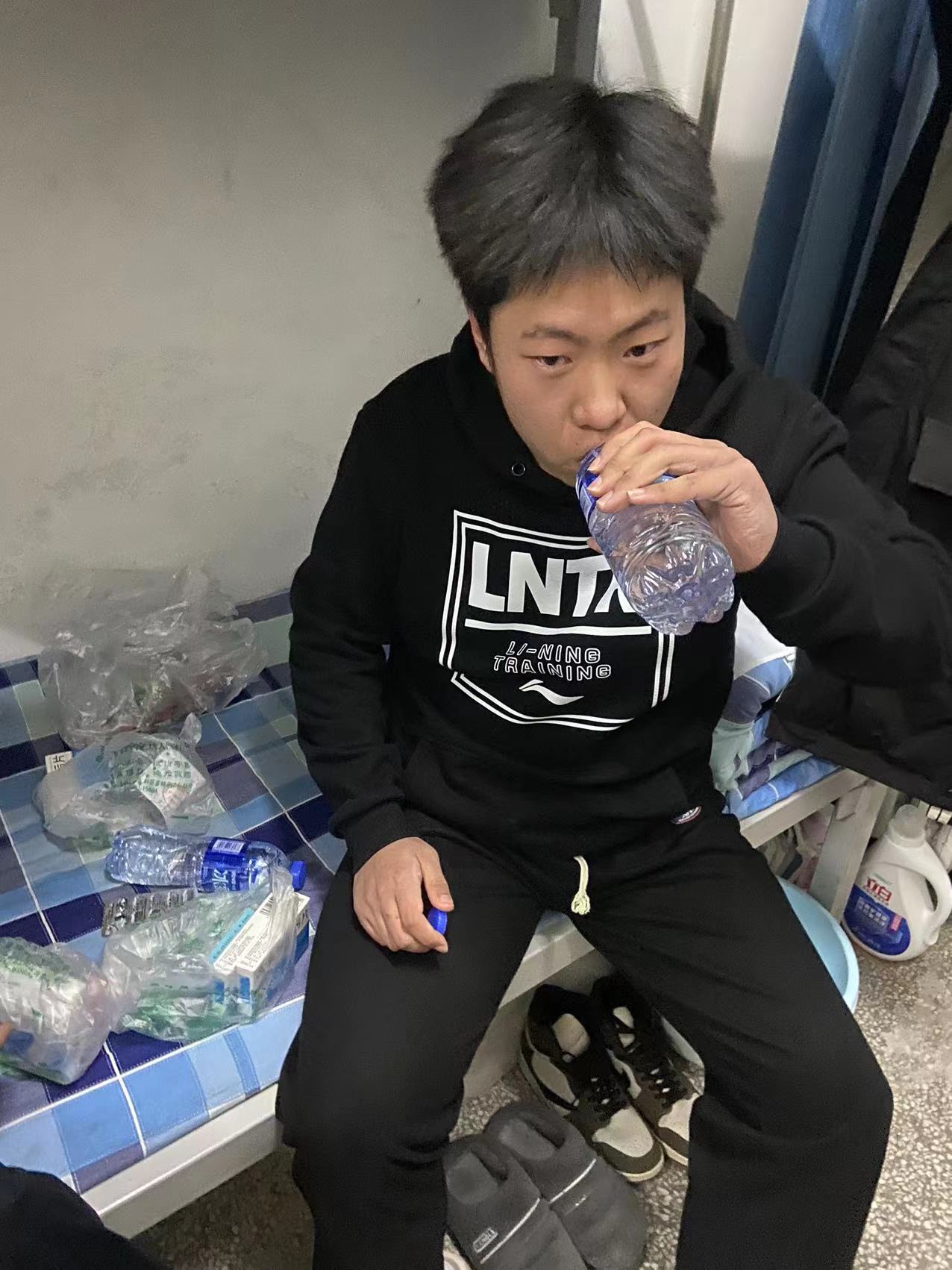2020级电气3+2班一个寝室4个孩子都不同程度感冒、咳嗽,班主任刘立波老师连夜驱车30公里给孩子们送来药品和水果。