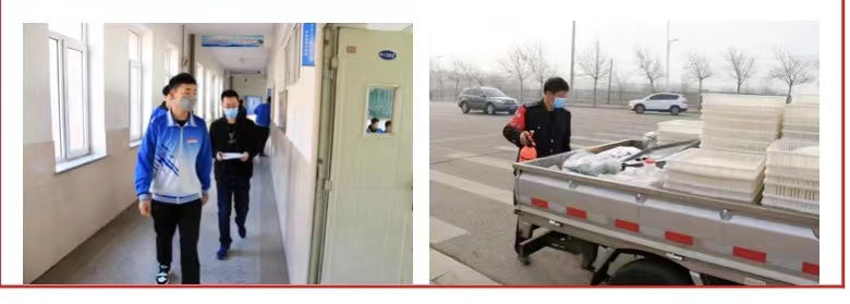 普通党员、老教师,在学校需要的时候,毫不犹豫主动请缨,用心观察学生思想动态,及时答疑解惑。这里有由原中层岗位退下的老同志,在组织需要时义无反顾的走在战“疫”的最前沿;有一对小夫妻推迟婚期,坚守岗位,认真完成领导交办的各项工作任务;有年轻教职工,舍小家顾大家,撑起学生管理的重任,落实各项防疫措施,无怨无悔;有近几十年党龄的两位食堂管理员,老退伍军人,为了让学生们吃好,心情舒畅的投入到学习中去,真可谓呕心沥血,兢兢业业,彰显军人本色。各位班主任虽身在校园之外,但时刻挂念封在校园内的学生,班主任与学生的时空连线持续不断,及时了解在校学生的思想、学习、生活需求,学生生病缺药,他们想方设法多渠道采购药品,多名教师自驾驱车 30余里,及时将生病学生所需药品送到学校。学校购买了洗衣机,有序组织为学生洗衣服。清明节按北方习俗组织住校值班老师为学生包酸菜馅饺子、学生以班级为单位自己动手包饺子等等。通过系列措施行为让学生感到学校的温暖、教职工的关怀。