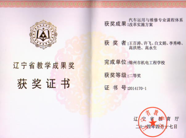 汽车专业教师多次获得全国职业教师信息化教学大赛一、二等奖、辽宁省教师技能大赛第一名、辽宁省优质课一等奖等荣誉。
